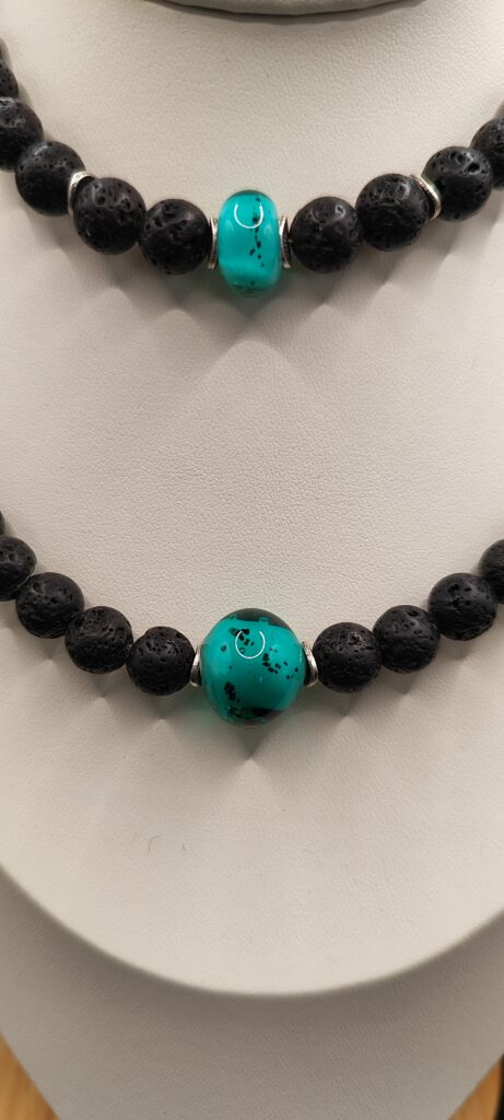 Pulsera y Collar con abalorios con cenizas de Volcán Tajogaite